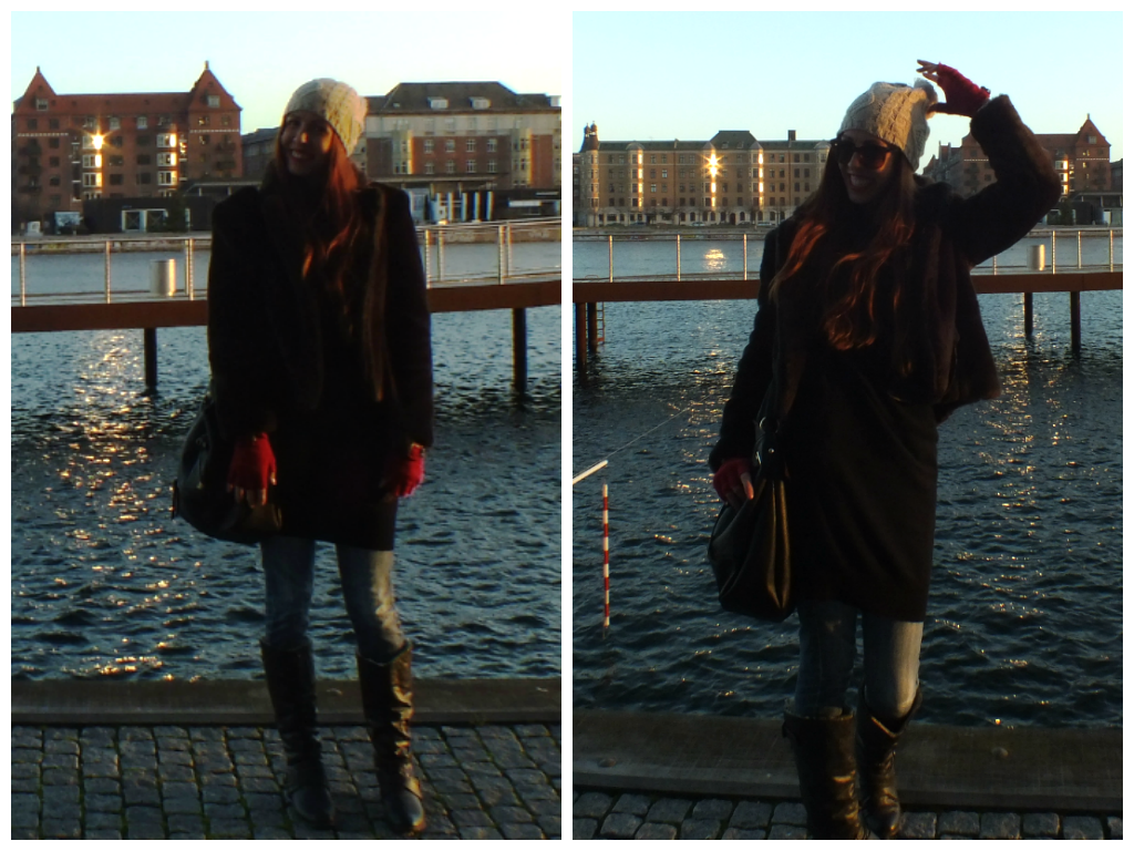 It is my second time in Copenhagen Denmark and now the temperature was 0 degrees giving me no doubt on what to wear! I needed something warm and comfortable! I am wearing Zara faux fur coat and Benetton woolen sweater as a dress on top of jeans.